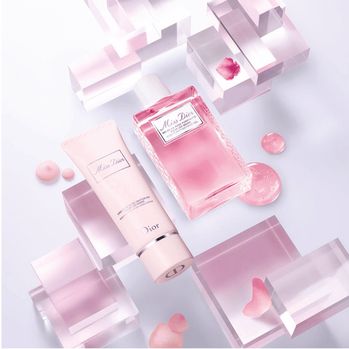 La crème de rose onctueuse Miss Dior nourrit les mains tout en douceur. Cette crème pour les mains, enrichie en eau de rose pénètre rapidement votre peau pour un confort absolu.